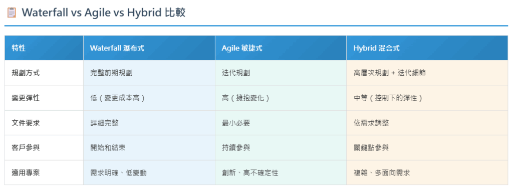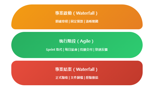 • ✅ 團隊成員來自不同背景(有些習慣 Waterfall,有些偏好 Agile)