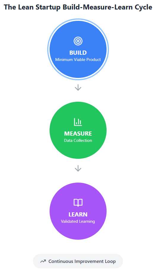 Lean startup’s core principle is dramatically shortening product modification and update cycles. Perfect is the enemy of progress—launch an 80% complete product first, then continuously improve based on user feedback.